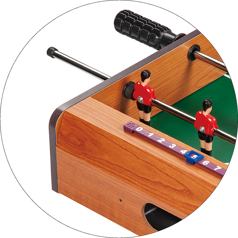 Its neutral wood tones blend into the background of any home's décor. Brightly coloured players dot the realistic-looking field. Manual scorers let you be the referee!