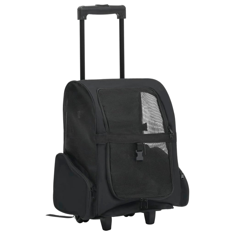 This pet trolley is lightweight and ventilated. It is designed for small pets like cats, dogs, rabbits, etc. This collapsible trolley, featuring an all-in-one design, can also be used as a pet backpack and a pet handbag. It is a perfect choice for pet owners. This pet carrier is light and well-ventilated, with strong mesh windows on three sides, making it a comfortable shelter for your furry friend. The zippered doors can be rolled up or down. Hence, it is easy for your pet to get in and out. This pet trolley also boasts 2 zippered storage pockets for carrying small items like toys, treats, etc. This pet trolley, made of metal and fabric, is very durable.