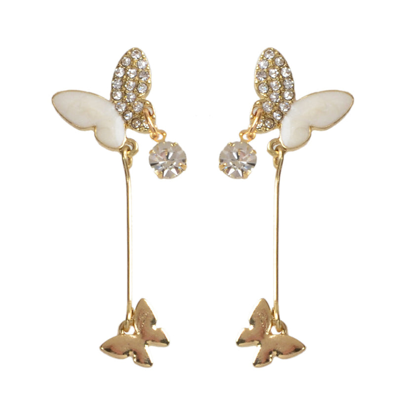 White Enamel Rhinestone Butterfly Pendant Earrings Dainty Gifts for Women Teens